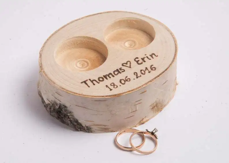 Wedding Wood Bride Groom Name Date Custom Ring Box Marriage Proposal Ring Holder Ring Pillow for Lo