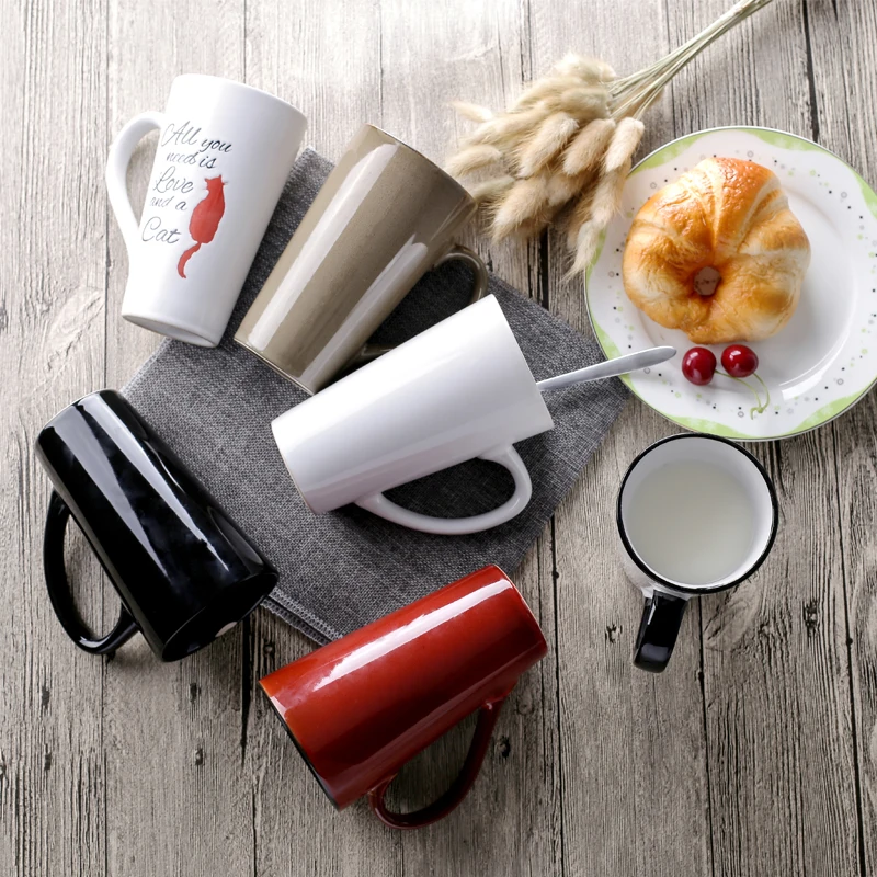 ULKNN Creative Mass Volume Classic Ceramic Mug With Lid With Spoon Milk Coffee Tea Cup Couples Wedd